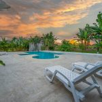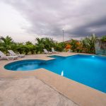 A private pool, a patio with an outdoor dining area for 6 people, and a charcoal BBQ for outdoor cooking and gatherings,Stunning views of the Arenal Volcano, and harvest fruit and herbs from the property’s garden