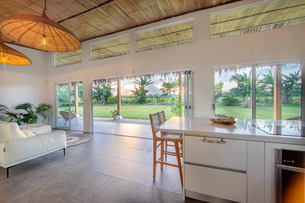 This single-story home located on the outskirts of La Fortuna offers a comfortable stay with a variety of amenities. Casa Verde features a light and airy aesthetic, with rattan accents, and lush natural surroundings.