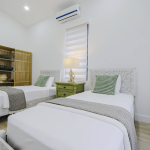 There are 3 bedrooms, tow of them with a queen bed and the other one with two twin beds, which makes it very comfortable for families or groups of friends.