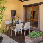 ..like previous UnTour accommodations, we were not disappointed. All the necessities were there. We did not need the handicapped accessible shower, but enjoyed its luxurious large size and instant hot water... We loved our patio table where we could enjoy a meal or relax with a glass of wine. St. Hippolyte was a good location--just a short drive to Selestat where we caught the train to Strasbourg and found a supermarket. It was just a short drive to the other villages on the wine route. Koenisgbourg Castle was perched just above our village.