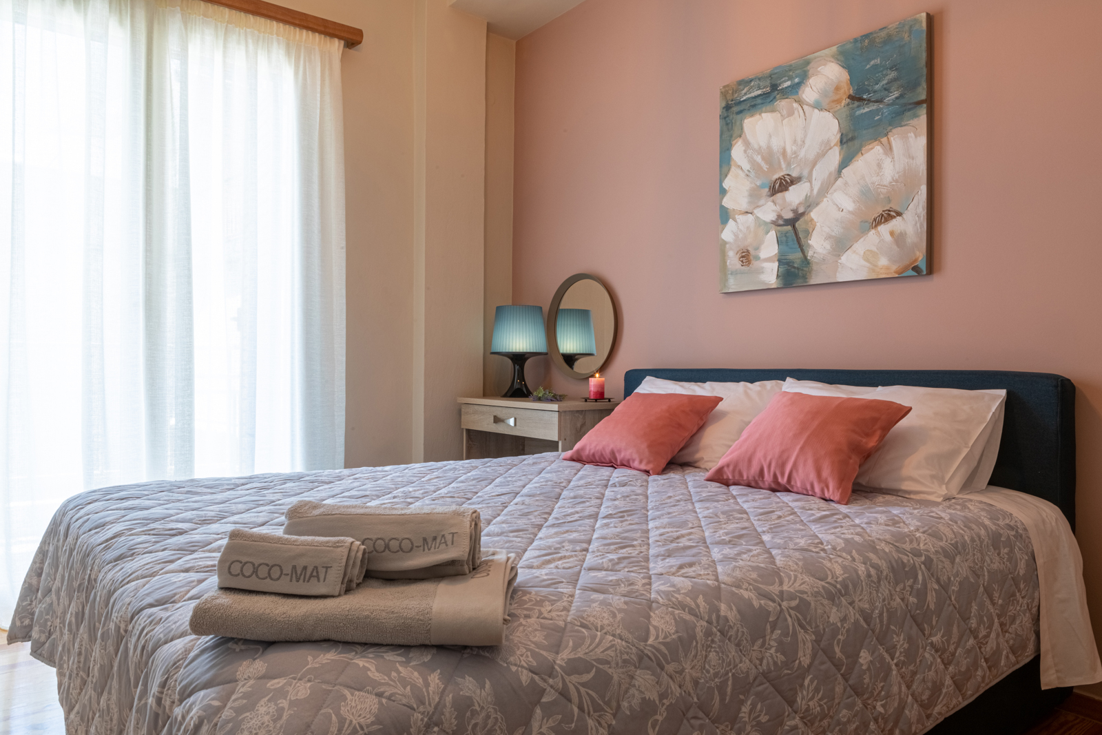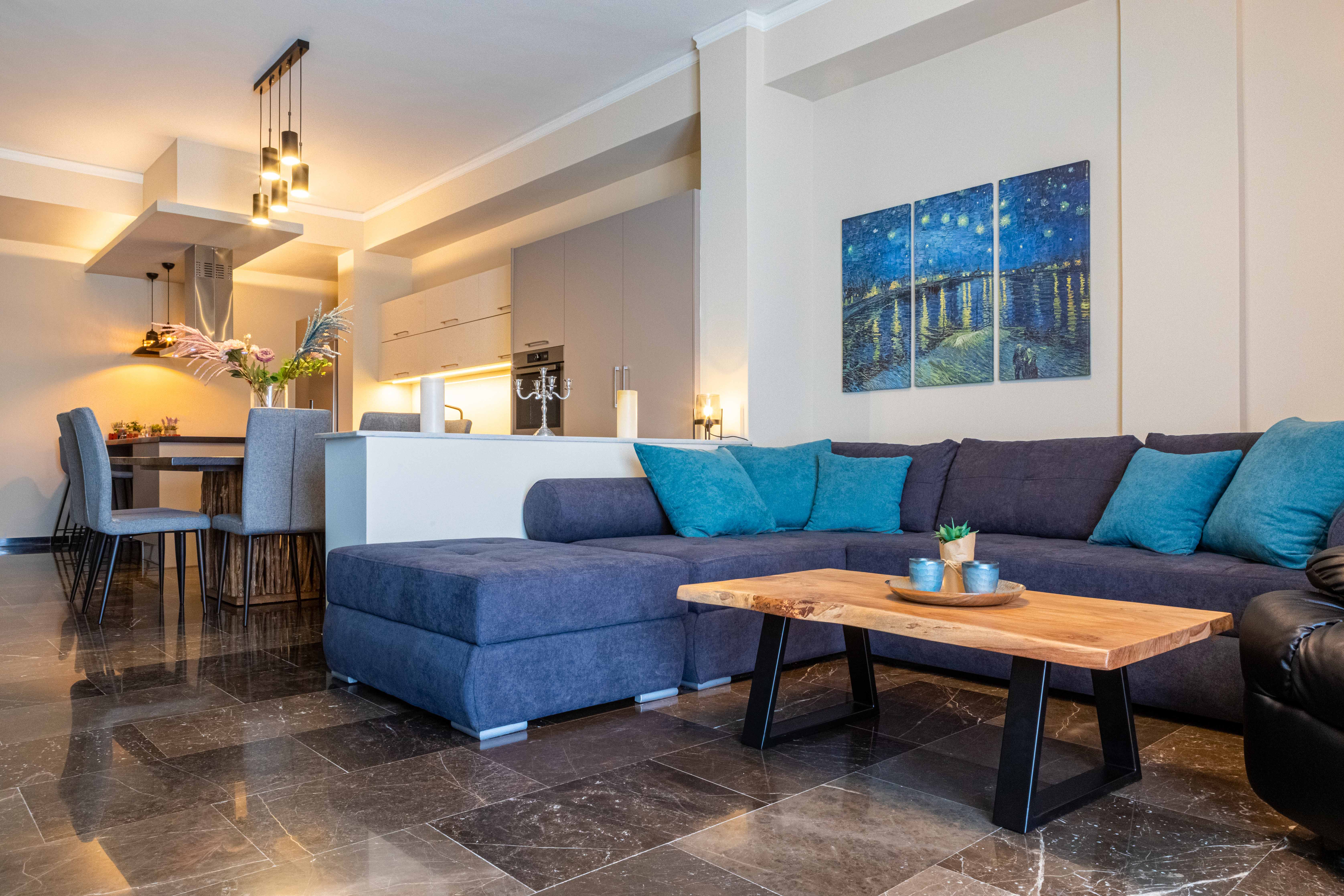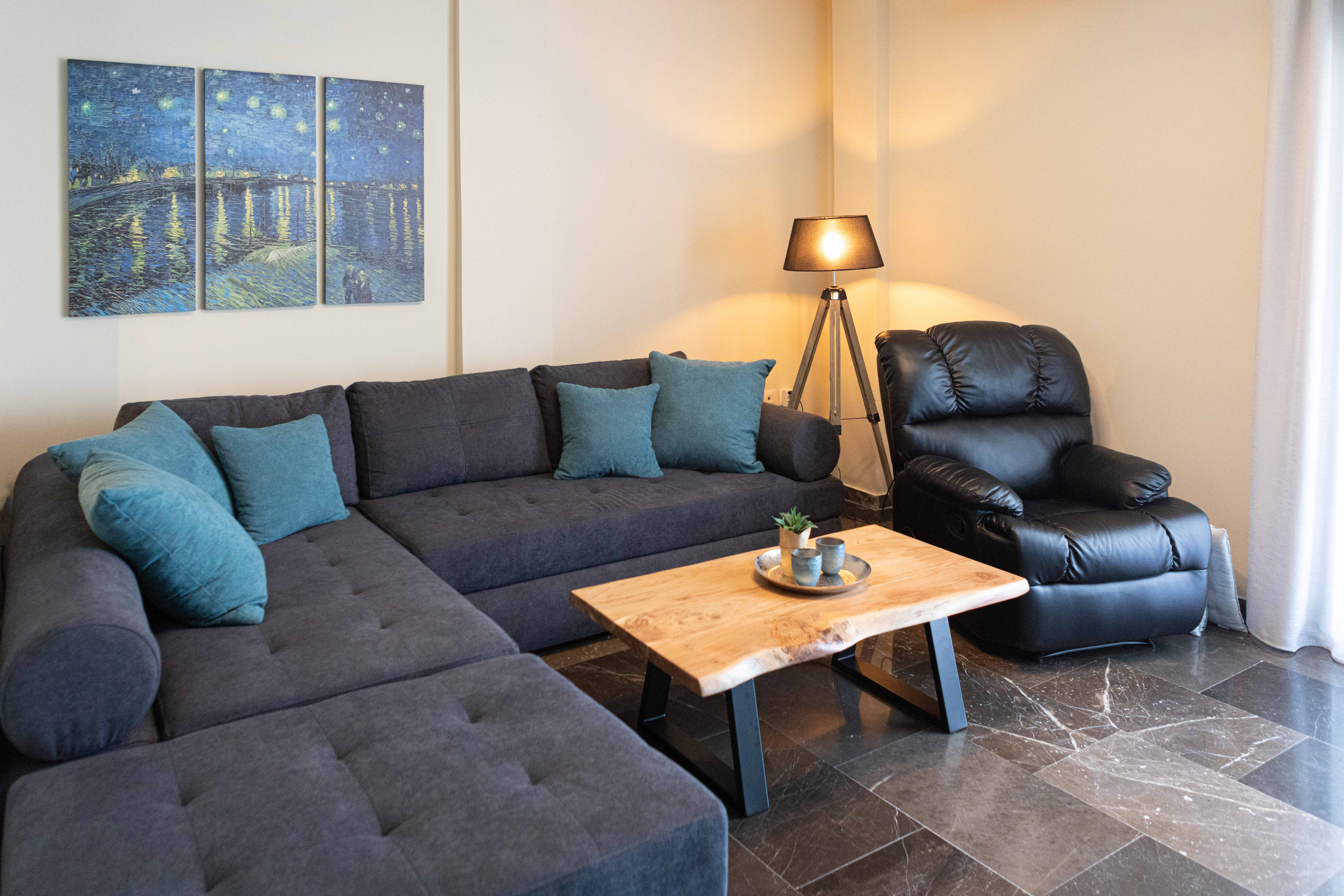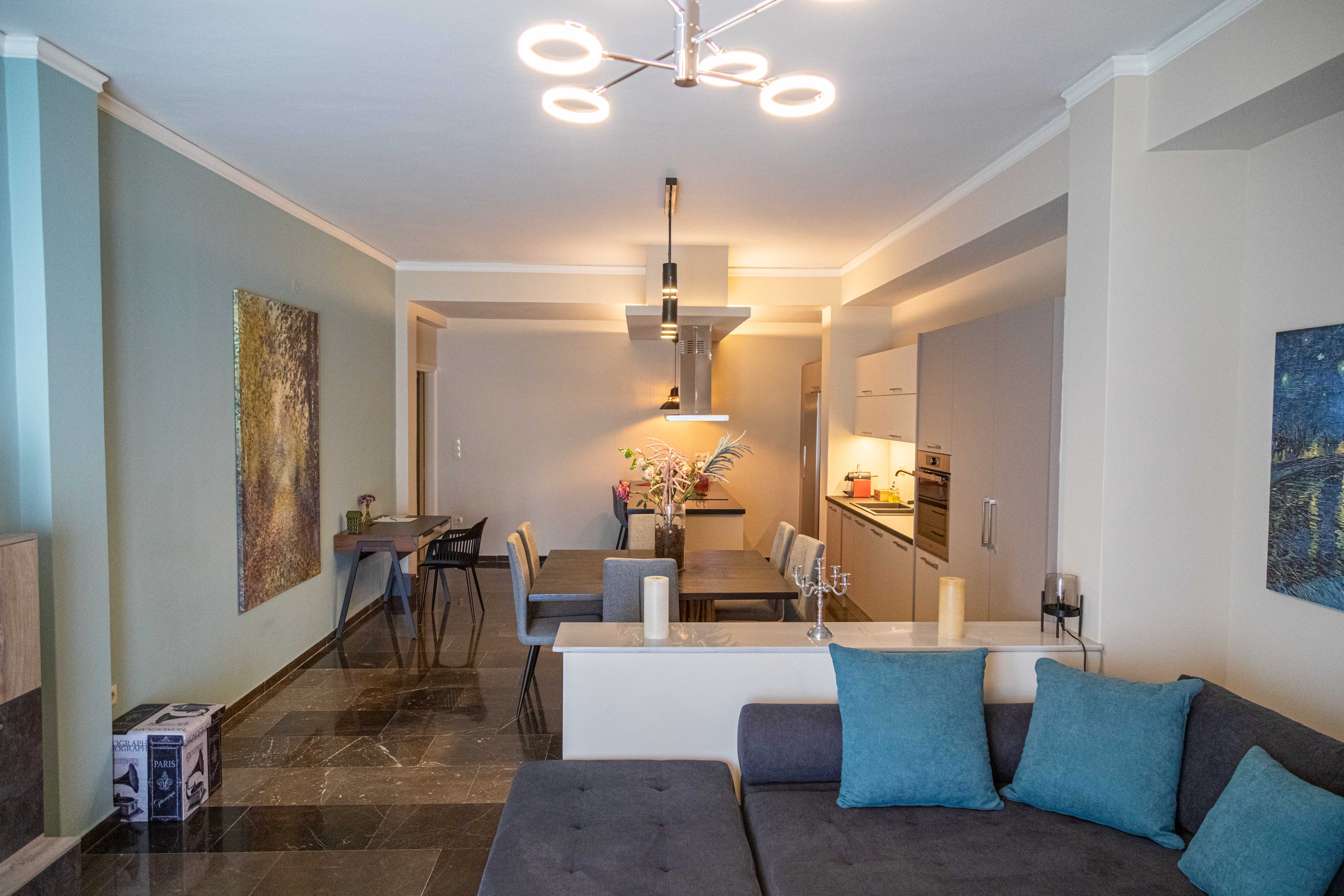 The modern third-floor 3-bedroom, 2-bath Fotis apartment is an ideal vacation home for a family or group of friends. Situated in Old Town Nafplio on the waterfront, it is only a few minutes walk into the center of the Old Town.