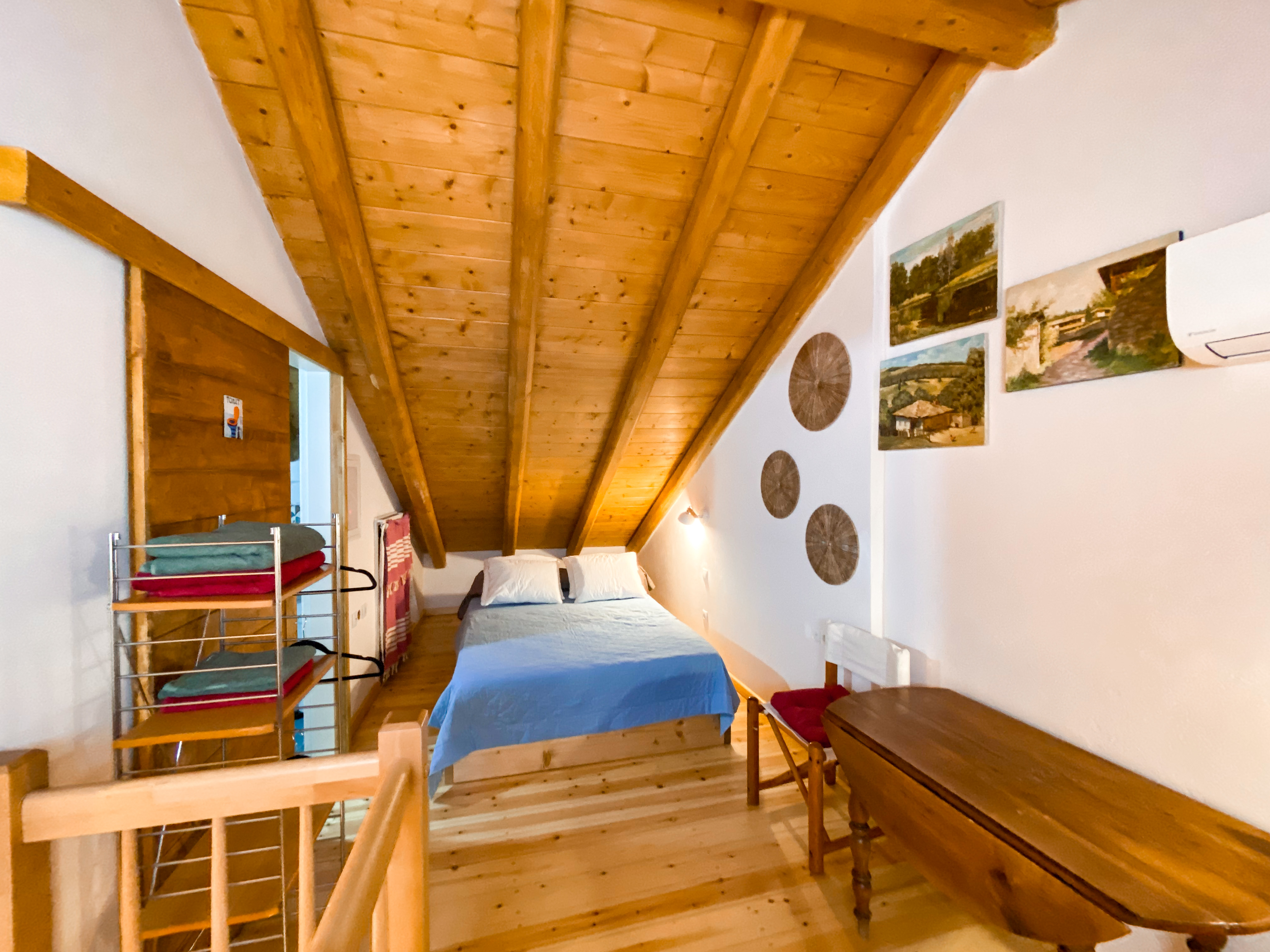 Upon entering the building, you'll be greeted by a small hallway that leads to both the Sotira apartment and the ground-floor Courtyard apartment, which is owned by the same hosts. Sotira is equipped with both air conditioning and heating, ensuring your comfort throughout the year. There is one step to enter the building and 20 steps to the apartment’s lower level, and an additional 17 steps to the 3rd floor bedroom/bathroom.