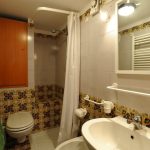 One small bathroom with shower, up a flight of steep steps from bedroom and living room