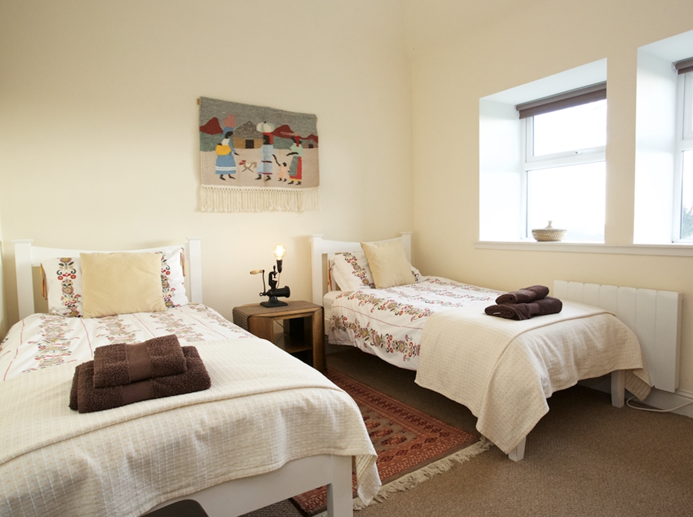 2 bedrooms: 1 with king size bed, and 1 with 2 twins