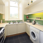 Washing machine in kitchen, drying rack provided