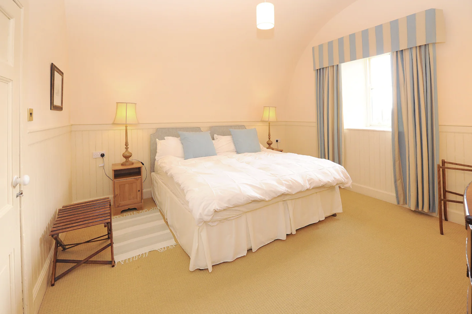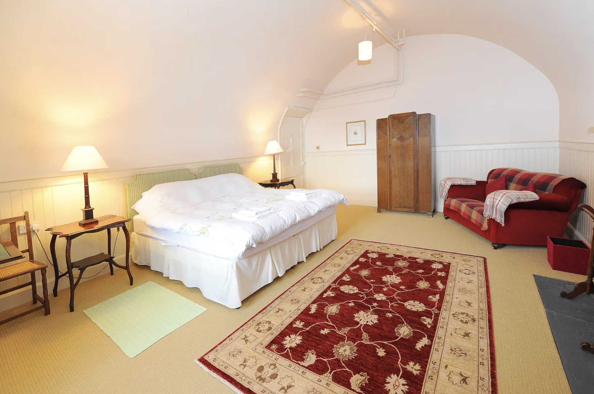 Experience the comfort of the Castle Suite, accommodating up to five guests in two roomy bedrooms. Enjoy the spacious living room with a dining area, fully equipped kitchen, and a bathroom featuring a separate tub and shower. The apartment has its own entrance, from a courtyard. It is located on the ground floor, and there are no steps. Modern conveniences, including a washing machine and Wi-Fi, cater to your every need. Car Parking is within 20 yards of the apartment.