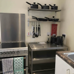 Fully equipped kitchen with electric stove, oven, microwave, refrigerator and dishwasher
