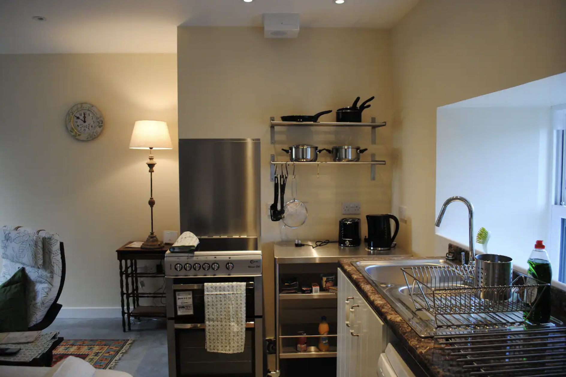 The recently renovated James' Cottage is nestled within the expansive grounds of the castle, bordered by picturesque farmland on its north side. It has a queen-size bedroom with an en-suite bathroom/shower, alongside a second bedroom furnished with separate twin beds and its own en-suite shower room. The central area of the cottage features a spacious sitting/kitchen/dining space, perfect for gatherings and cooking. The cottage is entirely situated on the ground floor and benefits from the comfort of underfloor heating throughout.